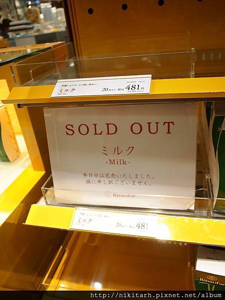 大阪只有兩間店有賣:梅田阪急跟難波的高島屋。我們因為剛好坐車到難波,所以就去高島屋的店(在B1)。去的時間是下午時分,雖然沒有網路上人家說要排40分鐘那麼久,但也小小排了一下(約10分鐘),只看見大家像不用錢的一樣一直拿。