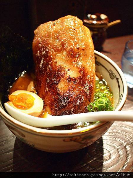 波妞媽一向比較喜歡吃沾麵,所以就點了濃厚沾麵。它們家的麵條跟虎嘯一樣是粗麵有點捲捲的,也都可以選SOFT系或彈牙系,波妞媽當然要選彈牙系囉叉燒本來也很大塊,但跟一本拉麵的叉燒一比,我的就是小巫見大巫了叉燒口感不柴,糖心蛋也好吃,很入味。