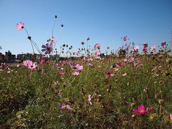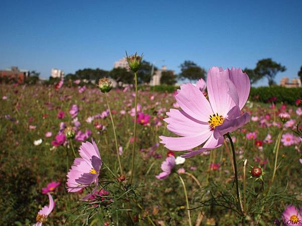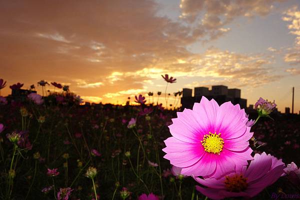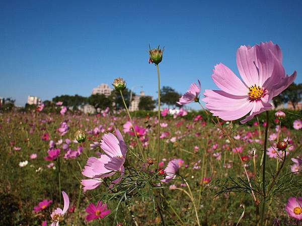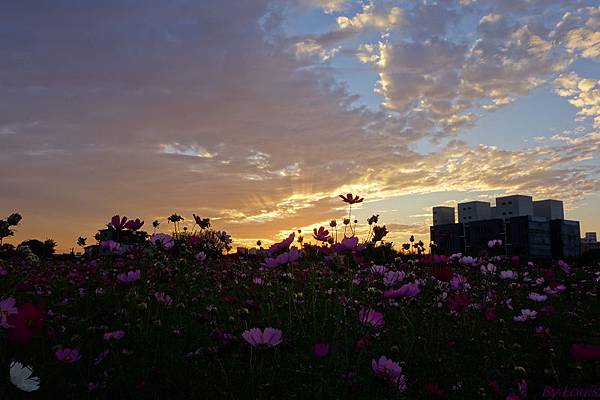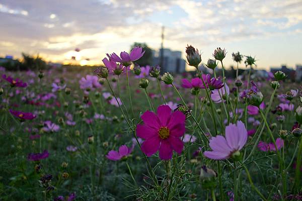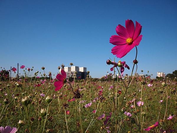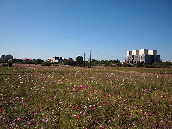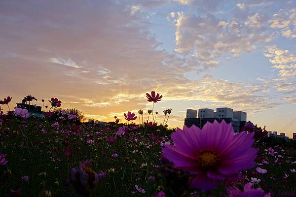 這片在福豐國中旁的花海,每年的這個時候,都種滿了波斯菊與向日葵,因向日葵上禮拜在家附近的田拍過了所以今天都是波斯菊;