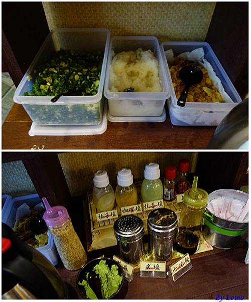 然後跟這個師父點,很快的麵就會煮好囉~! 只是這時候是沒加任何添加物的,要等下去調味區自己加! 我點的是一個豆皮,一個原味!