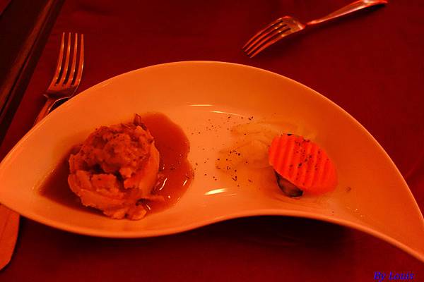前菜,有邊是馬鈴薯泥,但有咖哩的味道,還ok!