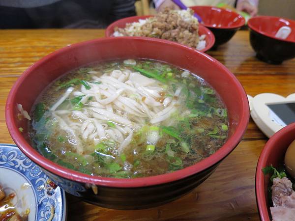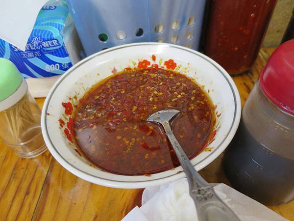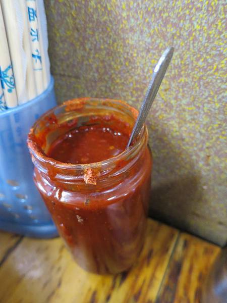 但是似乎沒啥特別的! 不過桌上放這一「碗公」的辣醬,非常的顯眼,想必有過人之處! 果然加上去後,所有的東西都加分啦…! 其實我在想可能是因為東西都很少鹽,口味很淡,像我們這種重口味吃慣的,就覺得還好! 但是這個加進去就完全不一樣啦…! 全部提升20分!