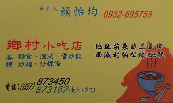 地址:苗栗縣三義鄉西湖村伯公坑155號