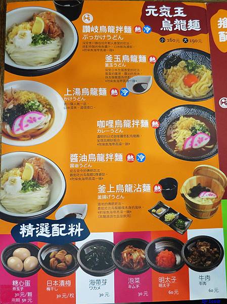 桌上的Menu設計也很素,但大概也說明了店家對自己的期許! 為了讓大家能吃到絕對在地原汁原味的讚岐うどん,麵團可是日本空運來的! 所以在台灣只有桿麵煮麵而已喔…