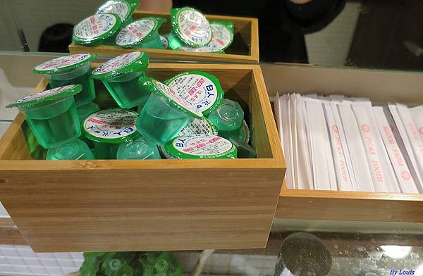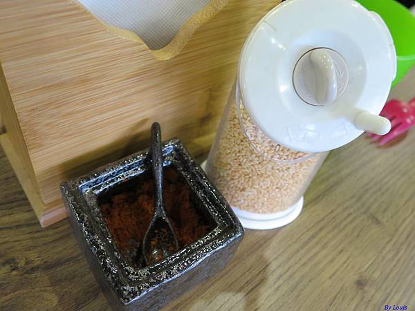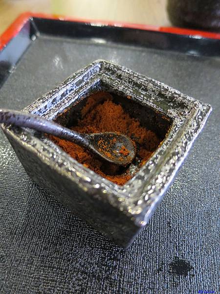 桌上唯二的調味料;那個暗紅的不是七味粉喔;
