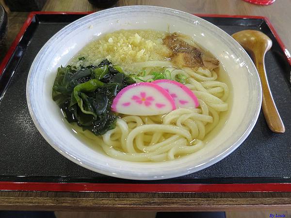 這是「釜玉烏龍」,裡面有一顆生蛋,攪拌後吃起來的口感像「親子丼烏龍麵」拿掉雞肉;這樣可以想像嗎? 有附一點醬油,先加一些,不夠鹹再加! 另外黑皿裡的是高湯,可以直接拿來喝。