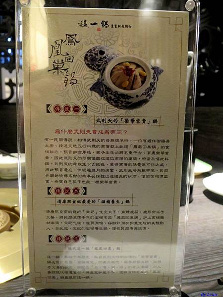 桌上的牌子介紹著「這一鍋」的由來! 似乎這「鳳凰回巢鍋」吃了會鳳凰加身,成龍成鳳