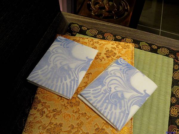 這金碧輝煌的是menu,二個藍色的是圍巾喔