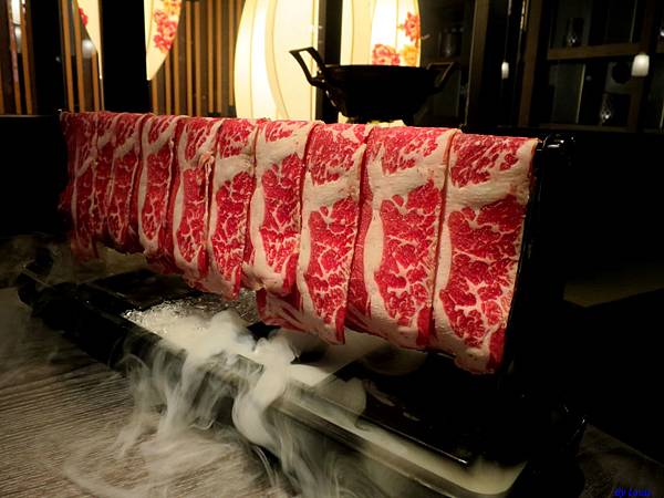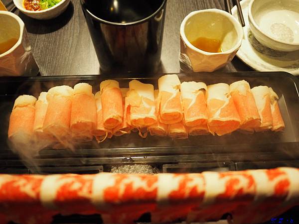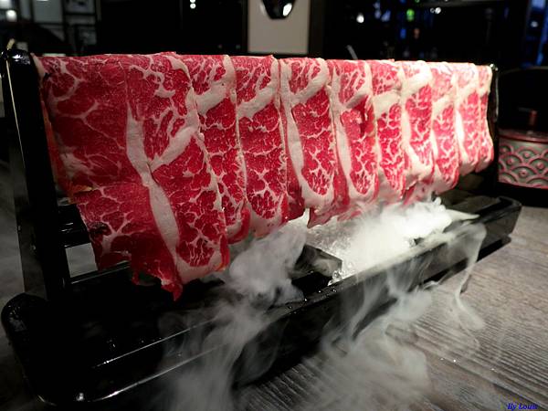 最特別的是這「神仙牛肉」,底下冒煙的是乾冰! 涮進鍋裡8秒,入口馬上感動! 所以這盤不但好看而且好吃,一定要點一份