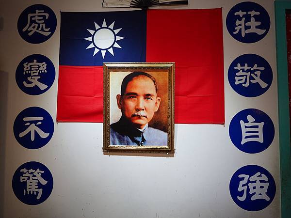 這種白底藍字的反共復國標語在眷村真的到處都是,國父跟蔣公銅像也是一定要的,餐桌餐椅也是跟以前眷村中的餐廳一樣,要是再多幾位外省伯伯,儼然就是回家的感覺了XD