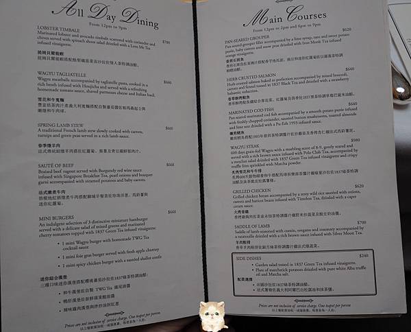 Menu來了,字小小的不容易看得清楚,看看數字就好囉!