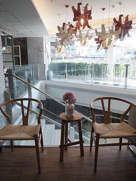 八樓是頂樓,飯店的中間是天井,也很有設計感。飯店內的雜誌有張照片模特兒就是在這邊取景,陽光打下來,很像拍mv呢~呵。