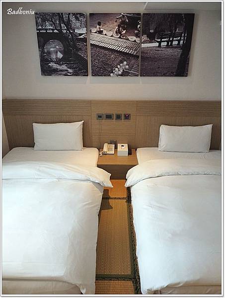 有了上次愉快的住宿經驗,我們這次趁著拍布袋好美里海洋世界立體彩繪村 的機會,又可以來二訪了,真開心~這次的房型是晨曦標準客房,房間裡有禢禢米喔~ (後來發現這也不是晨曦標準客房,又不知被升等到那個房型了)
