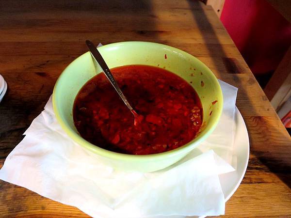這個辣醬看起來就很威,實際上也的確很辣,使用上小心。