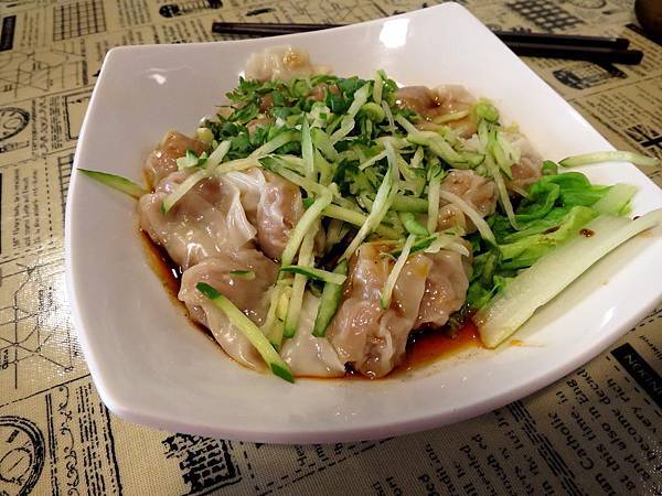 抄手! 個人覺得很好吃,餡肉也不少,底下的醬辣辣酸酸的。