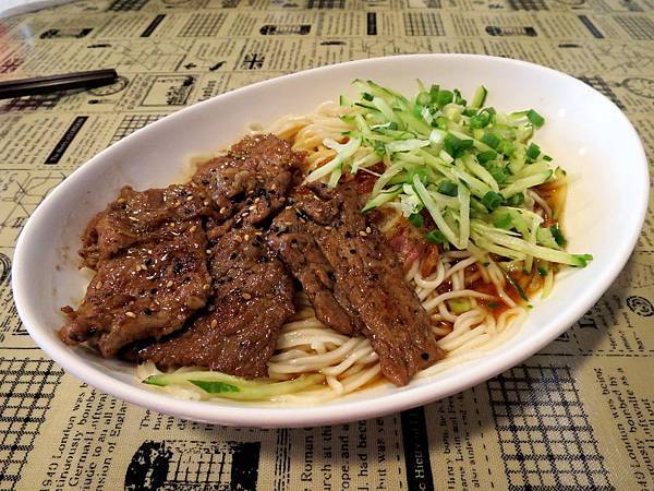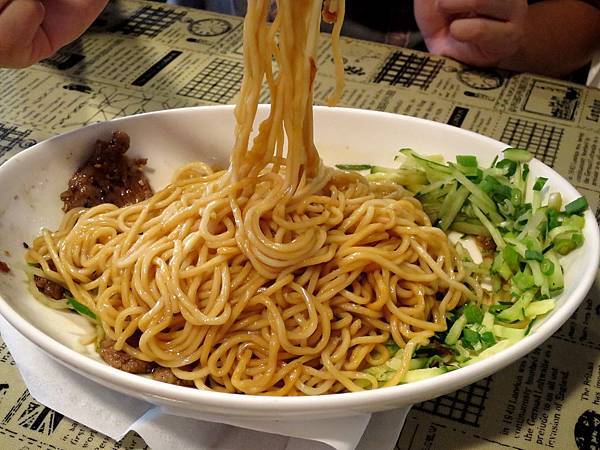 這個「燒肉沾麵」就是店裡的招牌了吧! 麵條Q軟適中。醬跟抄手的醬有一點點像,但當然不會辣! 對波妞來說,這個麵明顯比魯肉飯有吸引力! 確實很特別又很好吃。上面的燒肉也是吃醬的。