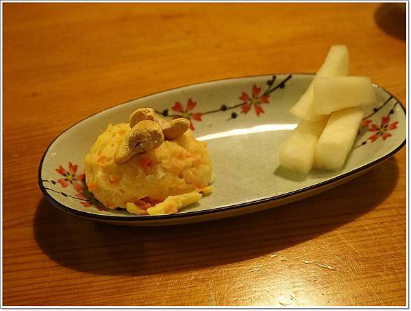 AB餐一樣有個沙拉。馬鈴薯泥搭腰果,與醃菜頭! 菜頭醃得很好吃。