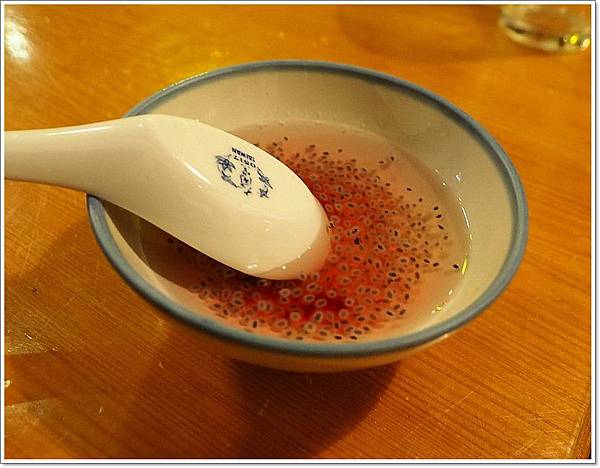 飯後甜點「紫蘇梅山粉圓」,波妞喝完一完又要了一碗,真的好喝。