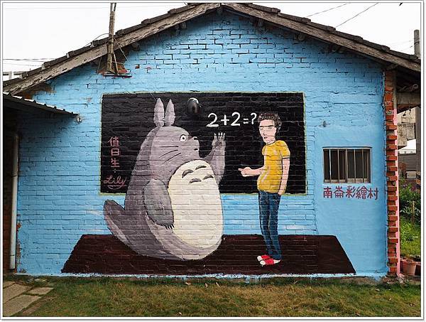 雖然南崙村彩繪的數量還沒像北崙那麼多,但可視為北崙彩繪的延伸,由青蛙到龍貓,都是對這一片土地的愛心。