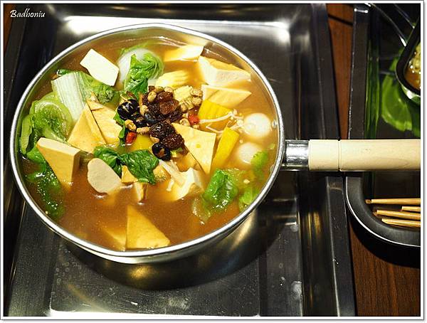 滷味另裝在一個湯鍋裡! 因為是滷水,所以是有湯的,而且這個湯是可以喝ㄛ。味道有點「醬菜+豆腐乳」以及中藥材的味道,喝起來有點會回甘的感覺,蠻妙的。