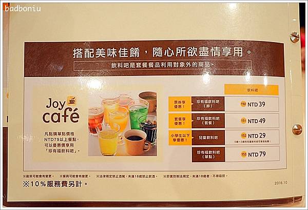 這家Joyfull我們在九州大分旅行時就一直看到這家店,只要熱鬧一點的地方,或是MALL裡面,甚至九州以外都能見到它的店鋪,難怪是日本第三大的連鎖家庭餐廳(那前兩名是??);沒想到Joyfull居然也來台灣開分店了!