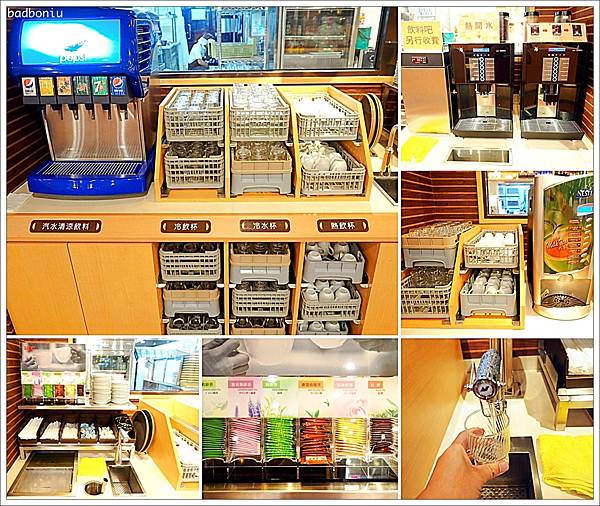 飲料吧還蠻多樣的,有碳酸氣泡飲料,還有咖啡及熱茶(自己泡),飲用水也是在這邊自己裝。