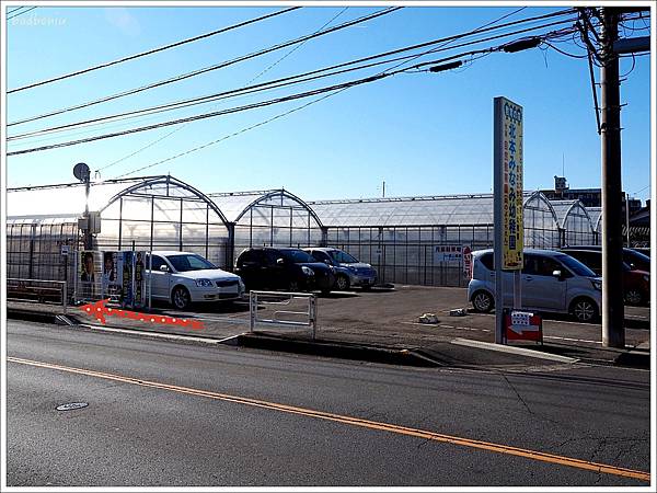 橫山農園最大的優點除了離東京市區近外,到北本駅後只要走路3分鐘即可抵達,不用再轉公車或是計程車,相對花費也較少。上圖中,路的盡頭就是北本駅,我所在的位子幾乎就是草莓園。
