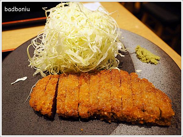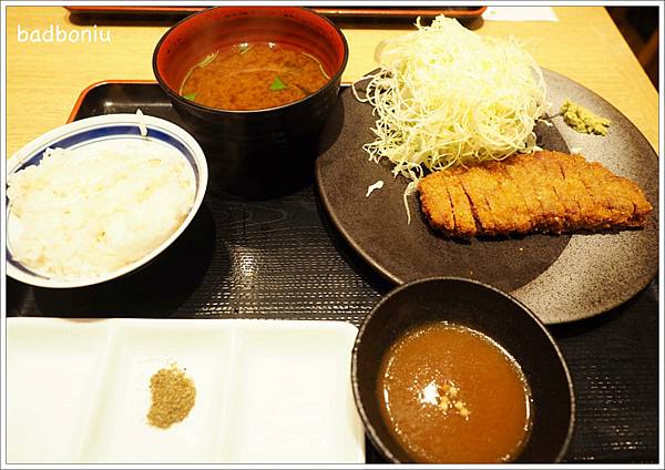 這牛排比較像炸里脊豬,有種全熟的概念,吃起來口味也比較重,有點讓我想到味噌的味道