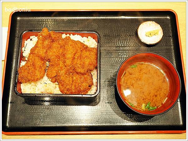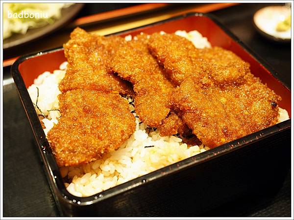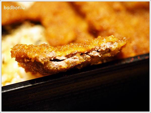 這一份是炸牛排蓋飯,用漆器盒子裝著,很有鰻魚飯的感覺。