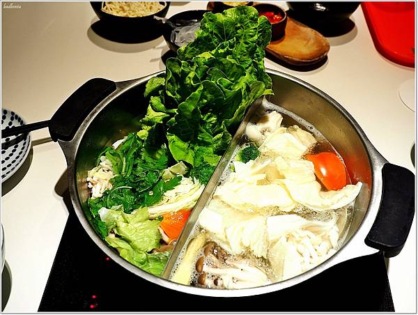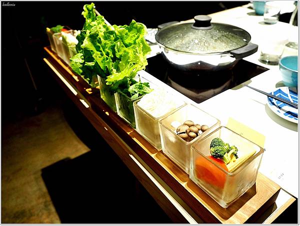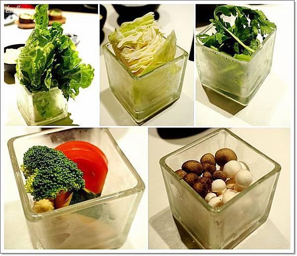 一份鍋物會先上5種青菜,兩個人共鍋時10種青菜正好會將桌緣排滿