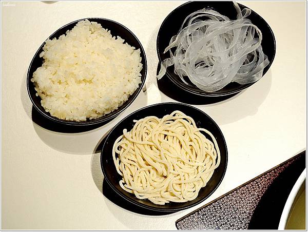 每份餐附的是 飯、麵或綠豆寬粉,我們加點了一個飯給波妞吃。這個米很好吃,忘了問是那裡的米,不過宜蘭的米本來就很有名。
