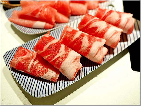 不鏽鋼鍋有明顯的標示為304,可安心使用! 我們點了兩種鍋「紐澳雪花羊$420」與「加拿大梅花豬$380」,湯底看起來是一樣的,只差在肉的種類。