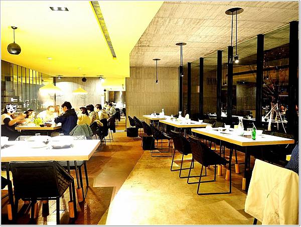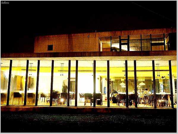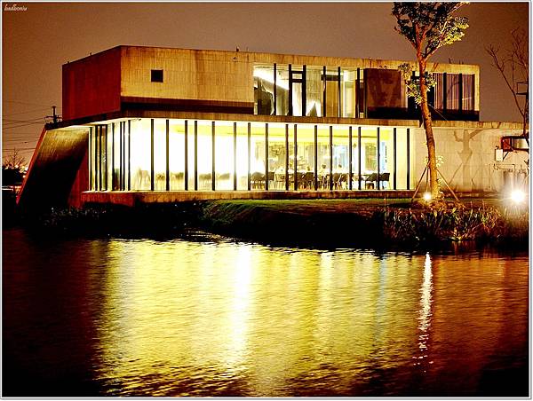 同樣的清水模建築,想來也同樣是林家兄弟的作品! 外觀就看得到超大片的透明玻璃與超美的燈光,映在水中產生欉欉的影子,完美的利用光影。