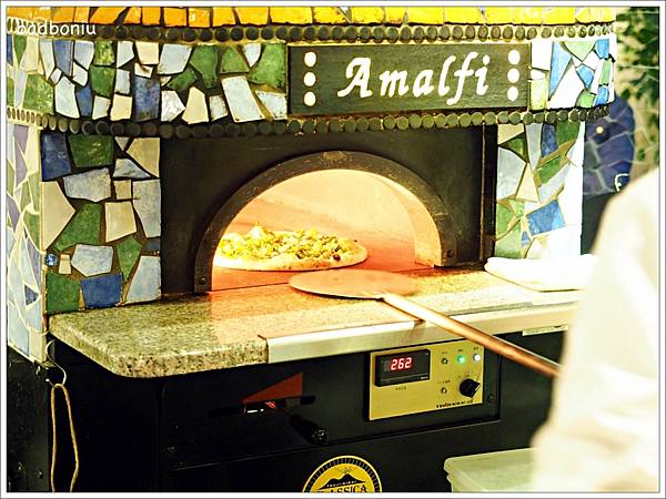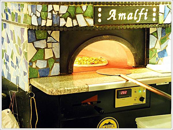 在這邊就能看到PIZZA送進去窯裡現烤的過程,PIZZA師傅還會甩麵團唷!在外面等位子時越看就越肚子餓XD