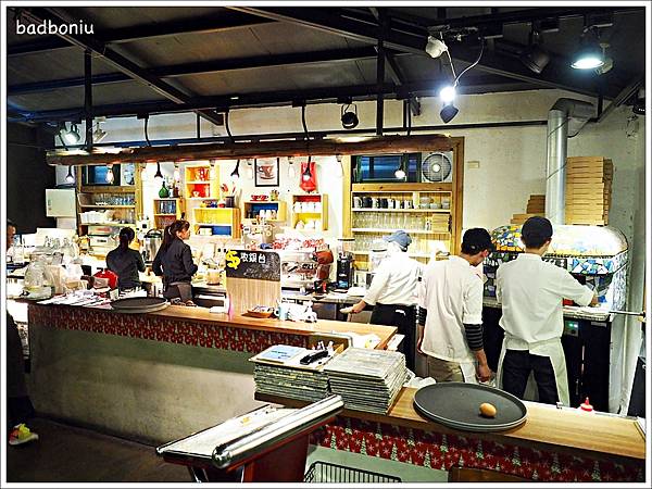 出餐的櫃檯跟烤PIZZA的窯都在這邊。因為生意好,所以櫃檯跟服務人員都好忙碌。
