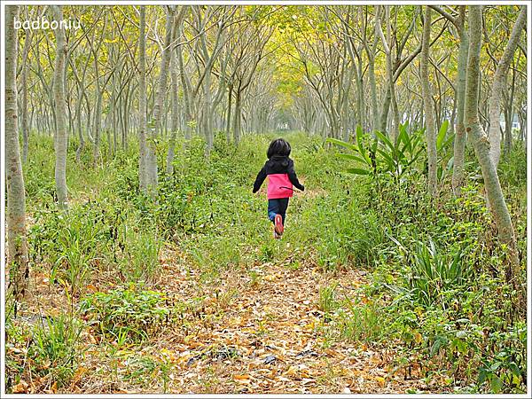 這裡據說是台糖的土地,種滿了一大片的無患子樹,因為種植上的視覺效果,大片樹林遮蓋住天空,樹林的枝節讓樹林的最末端形成一個圓弧狀的隧道,感覺就像小梅不小心發現的通往龍貓世界的秘密隧道。