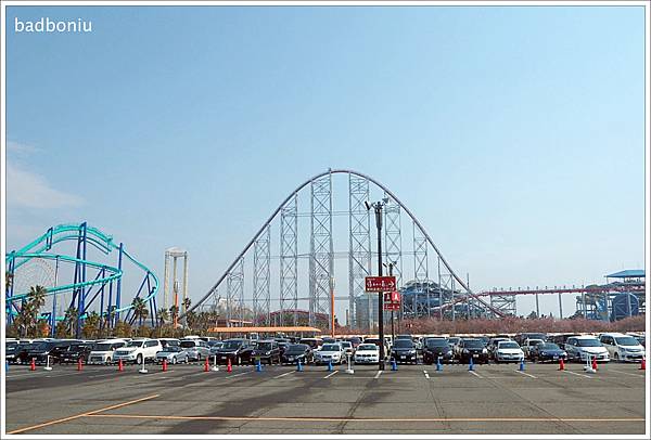 一下車,就可以看到長島樂園驚人的巨大雲霄飛車軌道,看得波妞家也好想去坐啊~不過因為波妞身高不夠,只能算了。不過裡面有麵包超人博物館,小朋友去到裡面一定會很開心。
