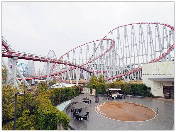 看這軌道就知道雲霄飛車一定很好玩,心裡一直吶喊:我也要玩~如果要玩樂園,也想逛outlet,看來得在這裡住上一晚才夠時間吧~