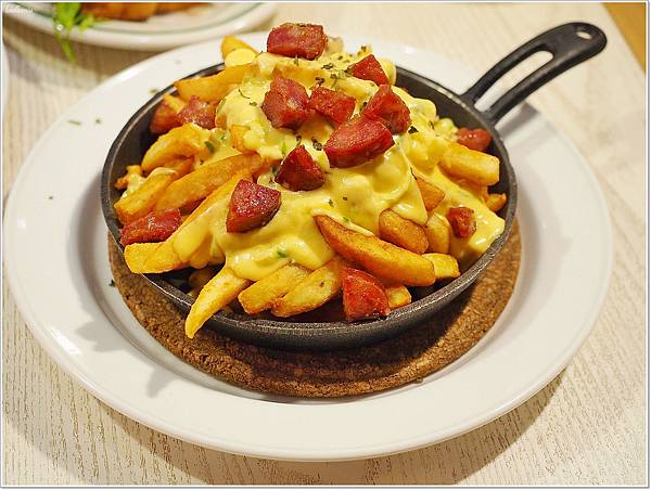 「蒜苗香腸起司薯條」$200,除了香腸外,還有濃濃的起司,起司帶有薄薄的鹹味,有點像是披上一層焗烤。薯條不到脆的程度,但也不會濕爛,不會有很油膩的感覺