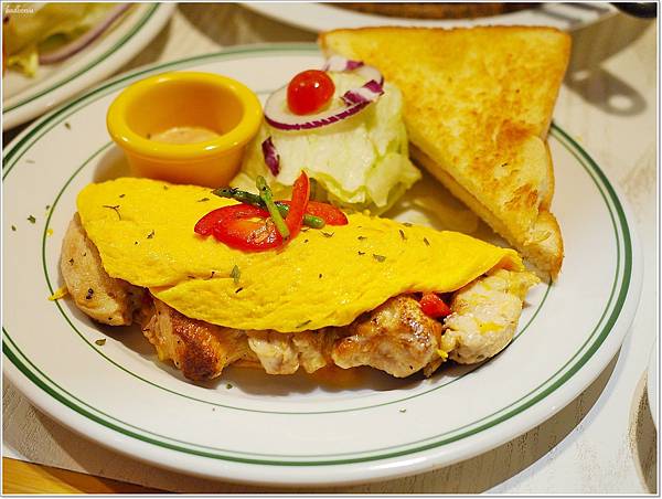 「雞蛋蘆筍歐姆蛋」$270,很漂亮的配色,而且也有附烤三明治(土司)