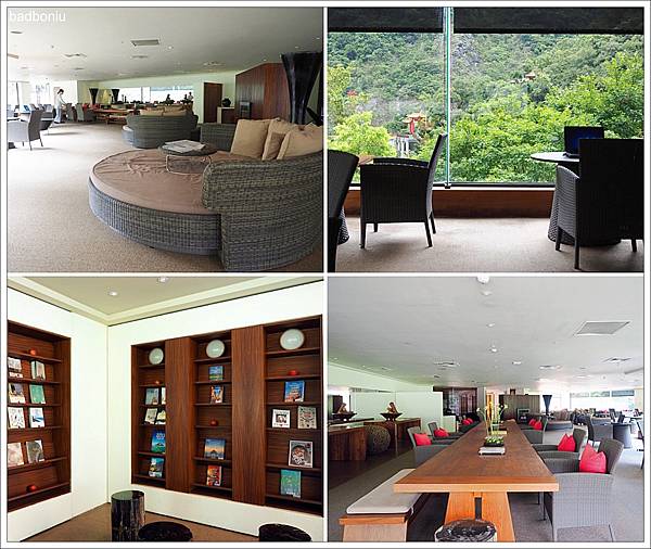 這個交誼廳專屬於「行館樓層」的房客,四周環繞的透明玻璃窗引進太魯閣峽谷的綠意,還有舒適的沙發讓人或坐或臥、報章雜誌可以閱讀,感覺備受尊榮。