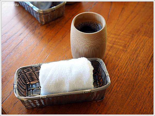 一入座之後服務人員會送上加了精油的冰涼毛巾,讓客人擦手或擦臉,洗去旅途的疲憊;杯子裡是好喝的冰涼烏梅汁,在炎熱的夏天中喝起來真的是很消暑。