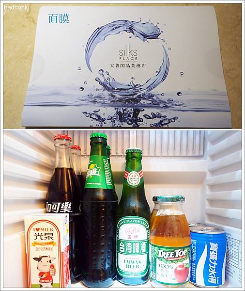 冰箱裡的果汁及飲料也未免太多了吧~不僅有氣泡式飲料,還有果汁、牛奶,甚至連啤酒都有!而且還貼心地準備了面膜,晚上可以敷著面膜當貴婦,感覺就好享受!這麼豐富的mini bar真的很少見啊!