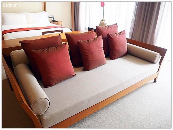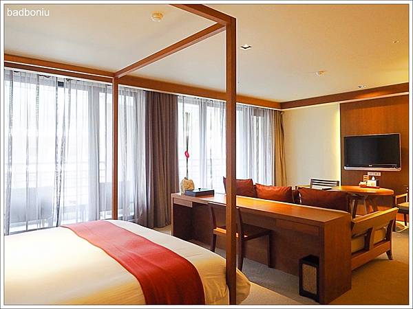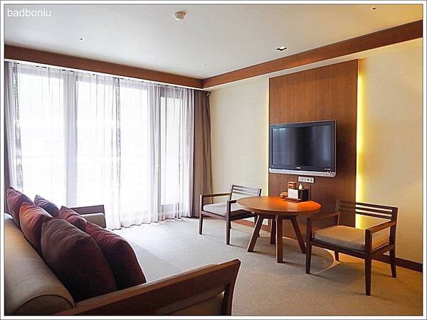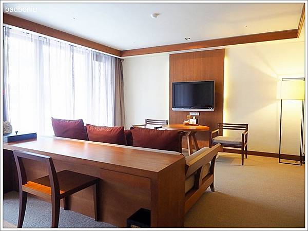 房間內除了臥室之外,還有一個小客廳的空間,雖然有電視,但頻道不是太多;不過住在這麼好的飯店,卻還一直看電視也太可惜了。
