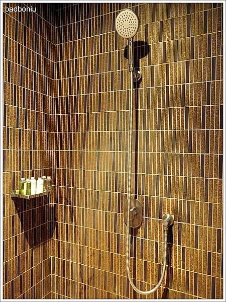 蓮蓬頭的水壓不大,但很穩定,水不會忽冷忽熱。