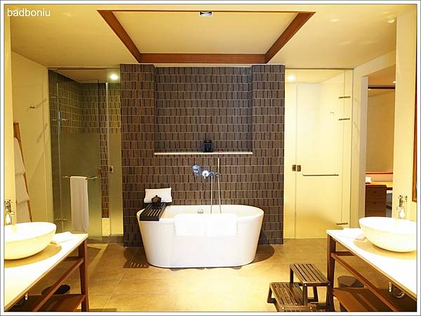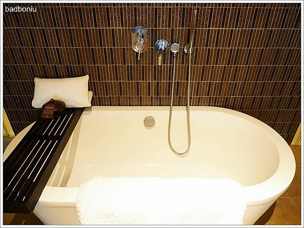 除了乾濕分離的淋浴間,也有造型浴缸可以泡澡。
