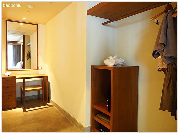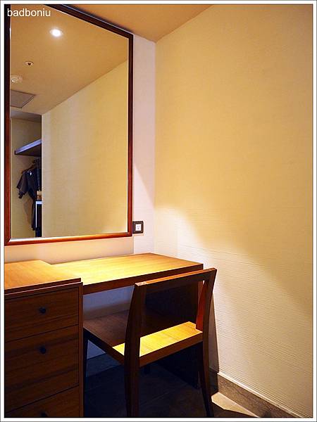 更衣室裡有個梳妝檯,使用的也是很有質感的柚木材質。