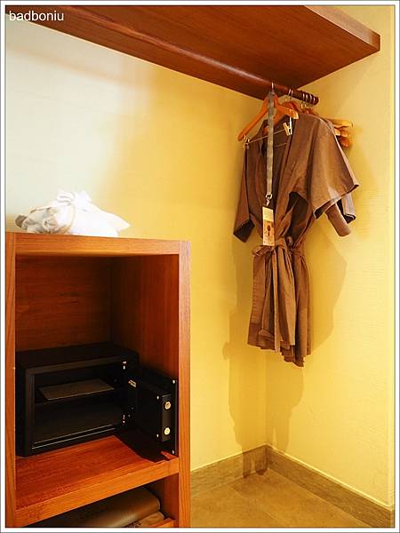 衣櫃空間很大,旁邊的櫃子中有密碼式保險箱。