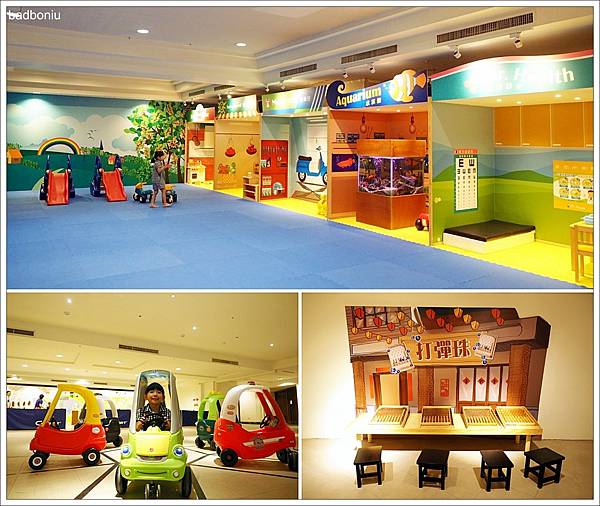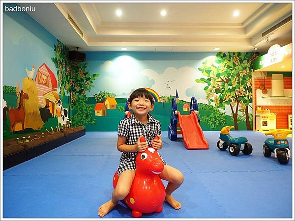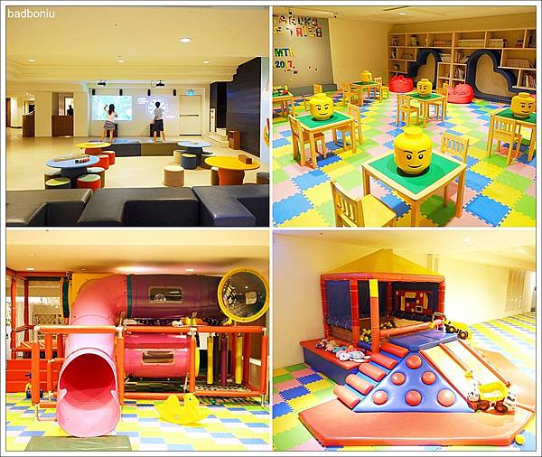 吃完滿足的下午茶,本來要參加的「泡泡同樂會」因雨取消了,但幸好飯店B1有個超大空間的室內兒童遊戲室,失望的波妞在這邊得到慰藉了XD