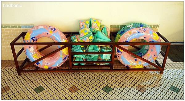 除了造型泳圈外,泳池旁還有一般的泳圈、臂圈可以自行取用,所以來「太魯閣晶英」根本不用帶泳圈呢!